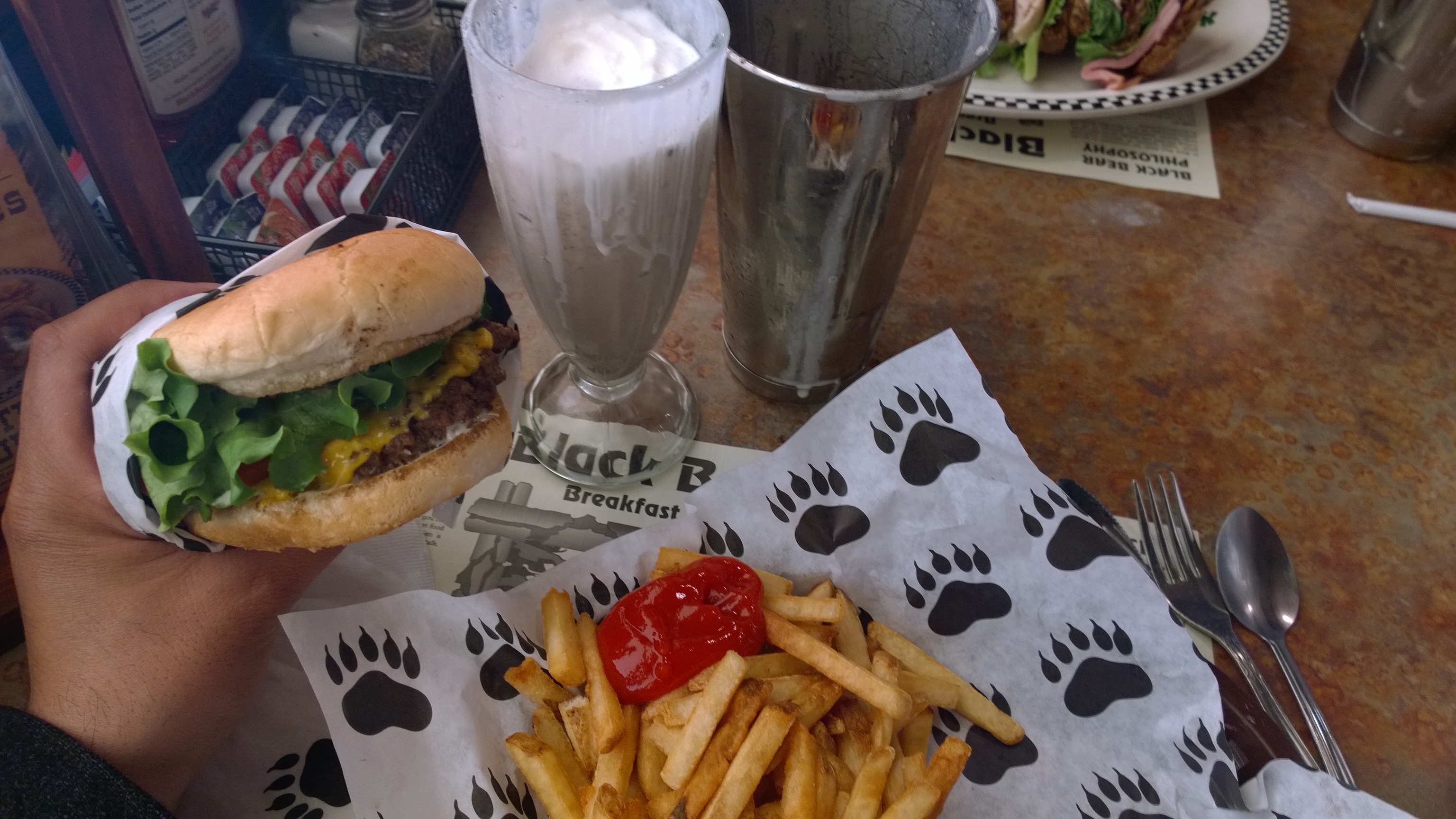 The decor does make the restaurant feel livelier compared to Lyon’s during its last months. Where Lyons felt a little drab and depressing, Black Bear Diner is bright and cozy. I’ve been to Black Bear Diner four times in the last year and each time it was busy enough that I’ve had to wait. It’s a good sign. A busy restaurant (no matter the Yelp ratings) is a good thing to me. It means that people like the food enough to pay for it. The food is somewhat fresh because of turnover. As more people eat, the more food has to be brought in. And the service is decent enough that it doesn’t turn away customers.